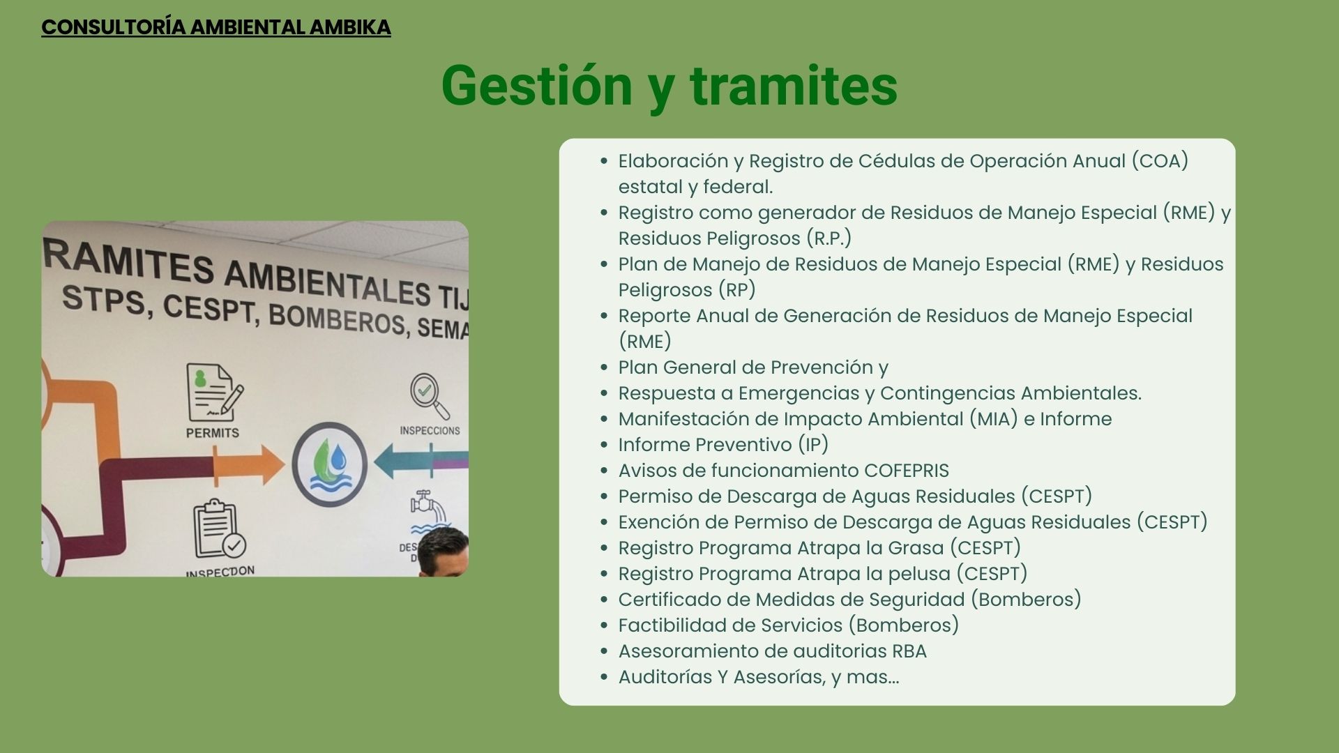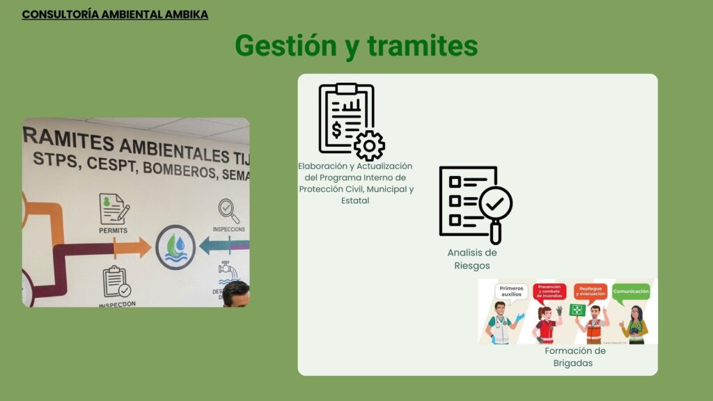 Gestionamos y damos seguimiento a trámites y gestiones administrativas ante las distintas dependencias de gobierno del Estado de Baja California, orientados al cumplimiento normativo en materia ambiental, seguridad, y regulaciones aplicables.